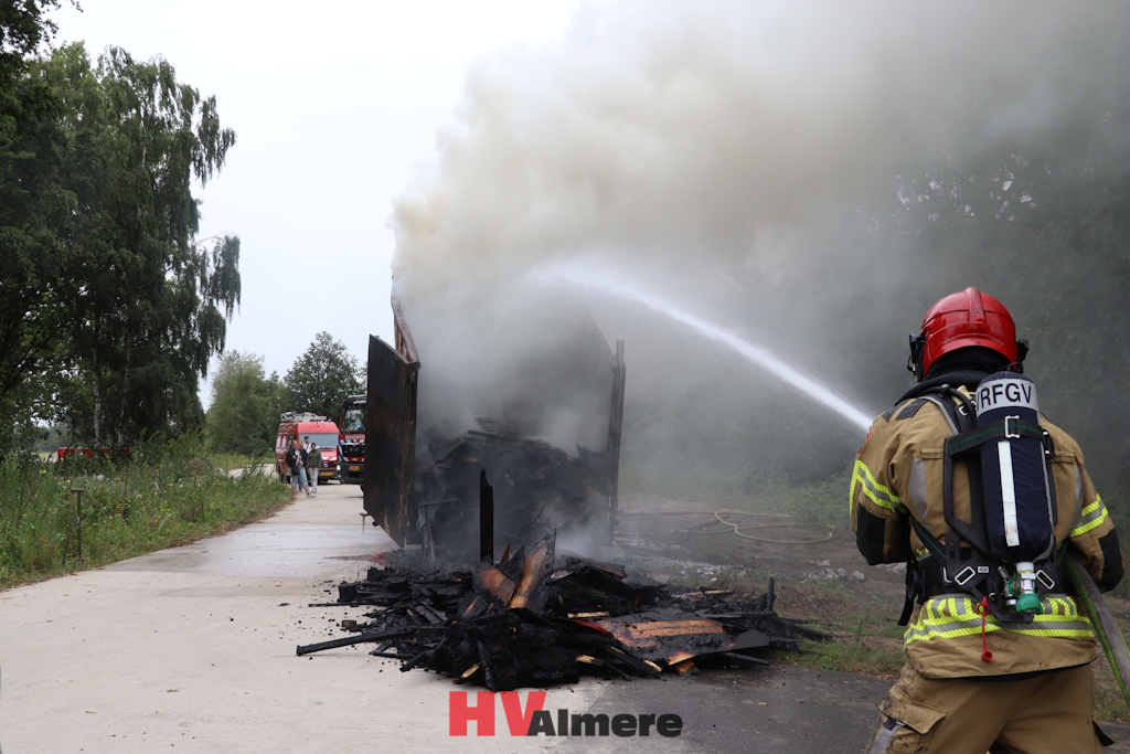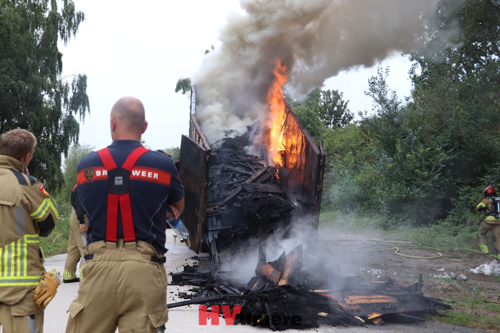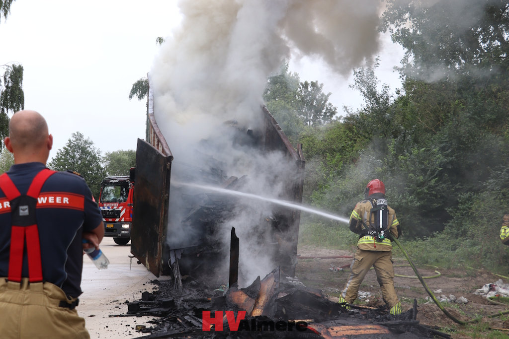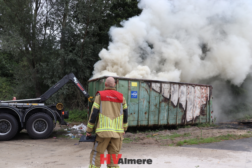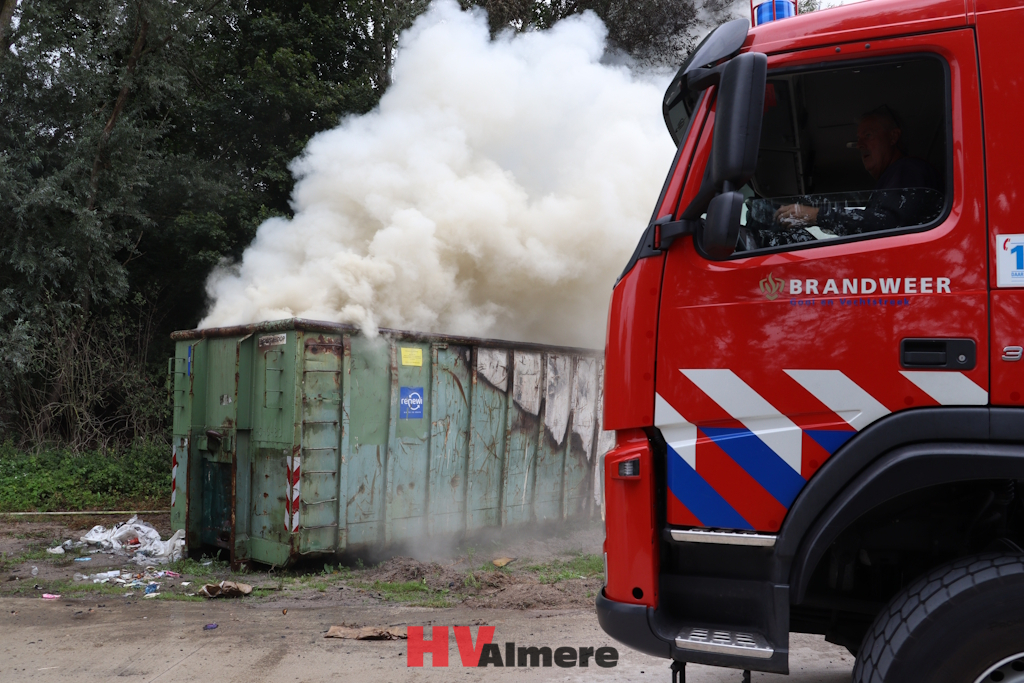 Zondagmiddag is er brand ontstaan in een grote container met houtafval langs de Almerestrandweg in Poort.