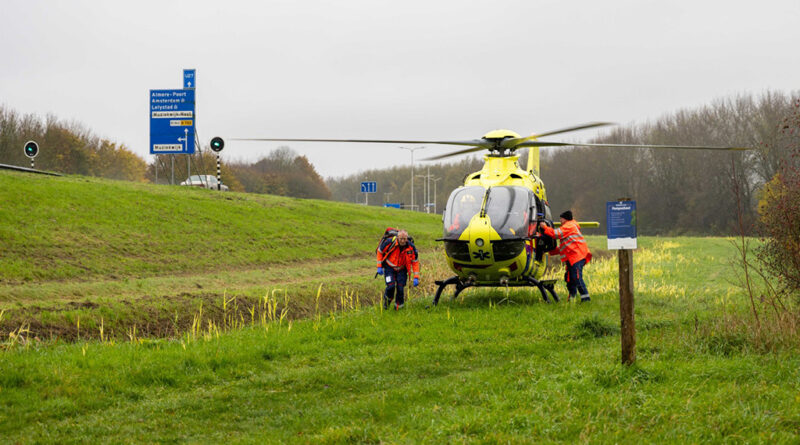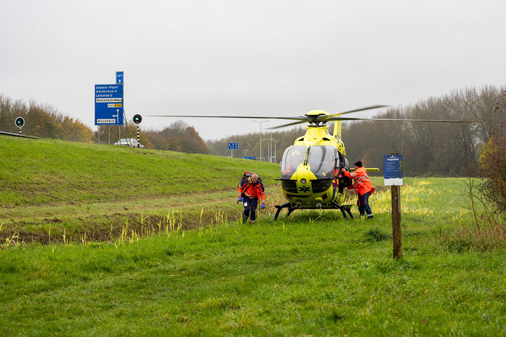 Op de Pampushavenweg is vrijdag aan het begin van de middag een auto frontaal tegen een brugpilaar van de Hogering gereden. Een traumahelikopter is ter plaatse gekomen om hulp te verlenen.