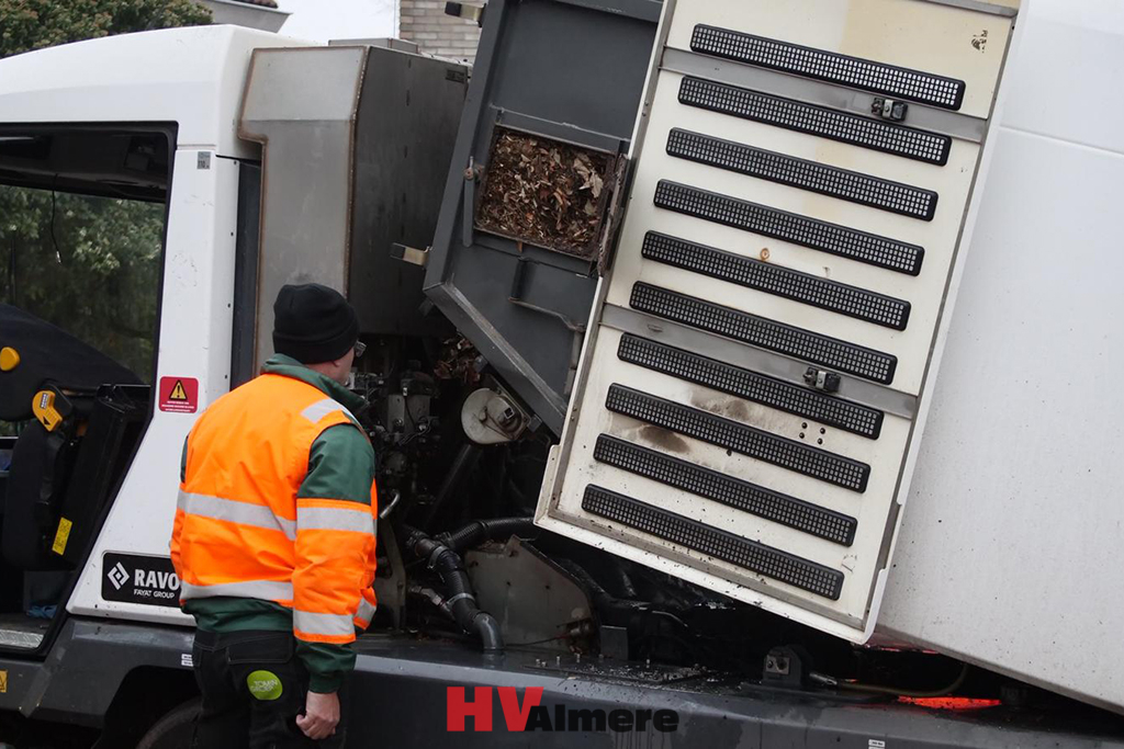 Veegwagen vliegt in brand in Filmwijk