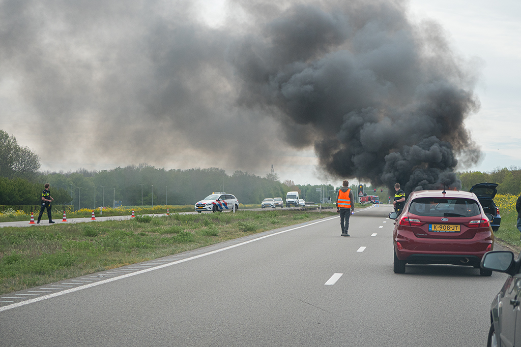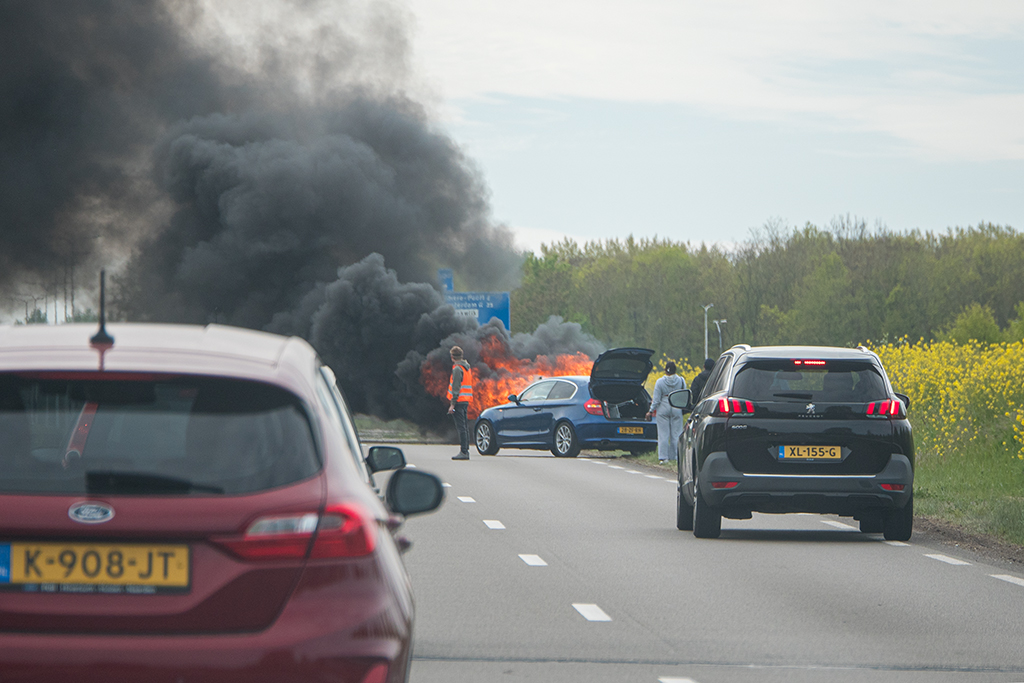De inzittenden van het voertuig konden op tijd uitstappen en kwamen met de schrik vrij. Kort daarna sloegen de vlammen uit de auto en waren grote rookwolken in de wijde omgeving zichtbaar. De brandweer was snel ter plaatse, maar kon niet voorkomen dat het voertuig vrijwel volledig in vlammen opging en als verloren moet worden beschouwd.