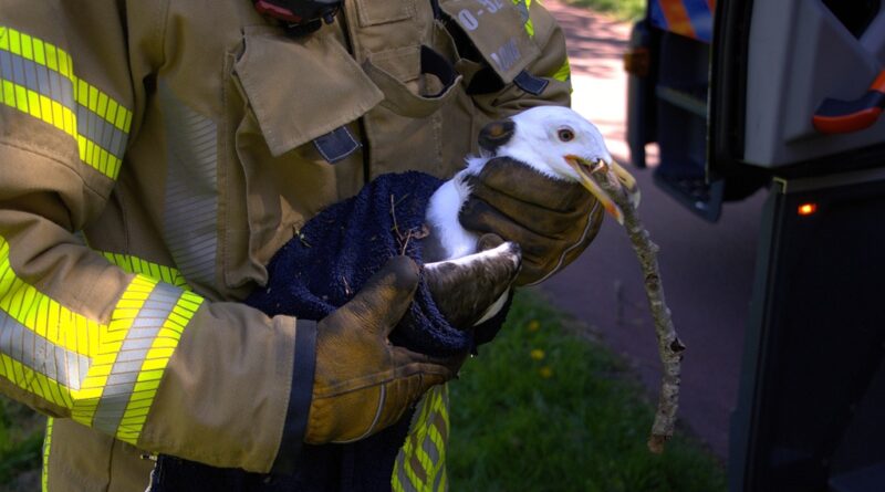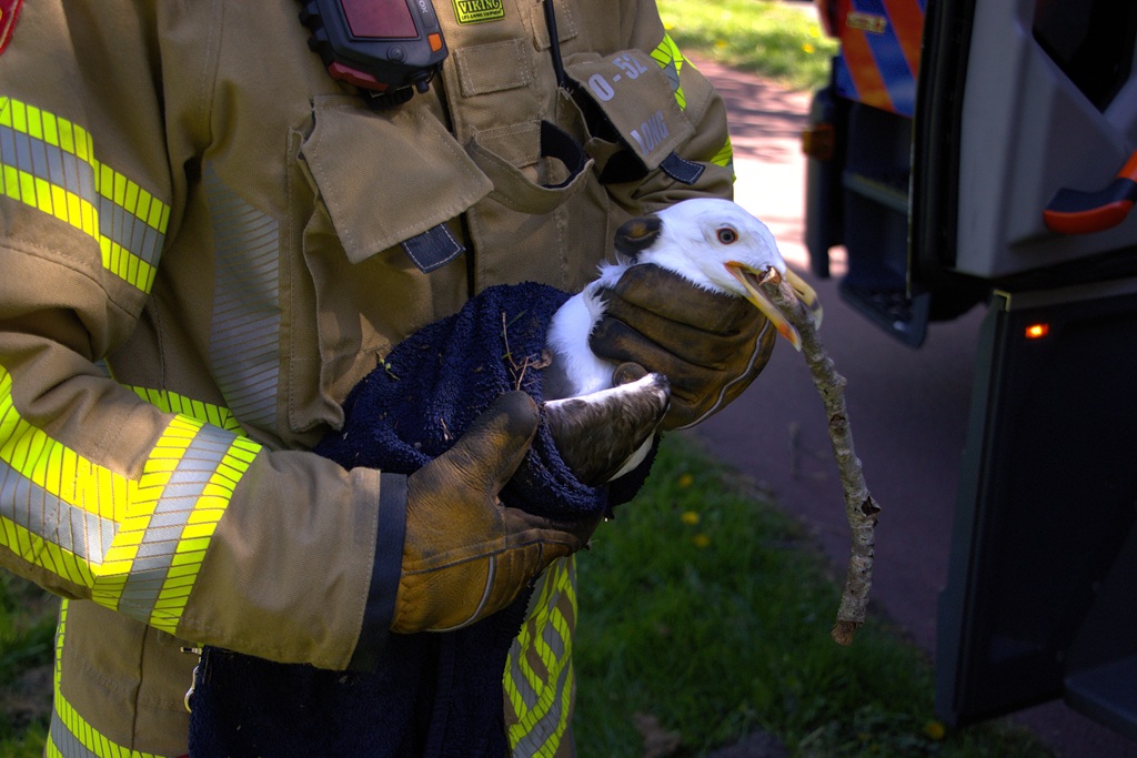 Woensdagmiddag werd de hulp van de brandweer ingeroepen voor een dier in nood in de Bloemenbuurt. Een meeuw bleek verstrikt te zijn geraakt in visdraad. Omwonenden wilden hulp bieden. Toen een eend zich ermee ging bemoeien moest er snel worden ingegrepen en gingen de bewoners het water in om beide beestjes te redden.