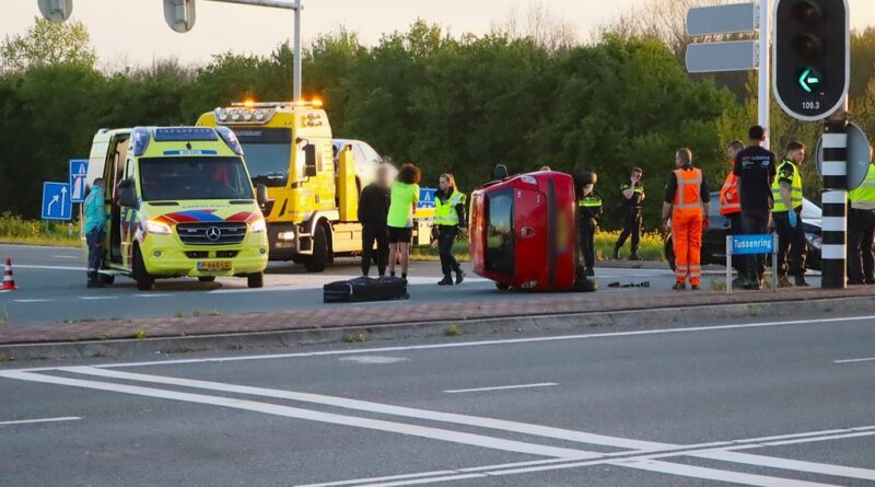 Bij een ongeval op de Tussenring is een auto op zijn kant beland. Meerdere voertuigen waren bij het ongeluk betrokken. De weg is lange tijd afgesloten geweest. Zover bekend is er niemand gewond geraakt.