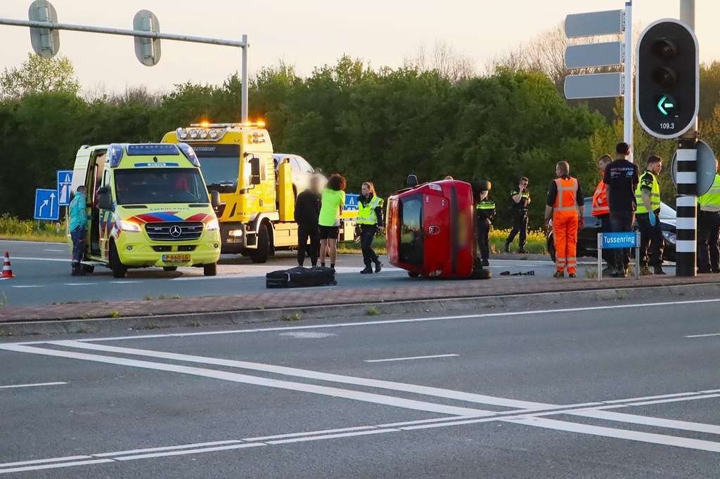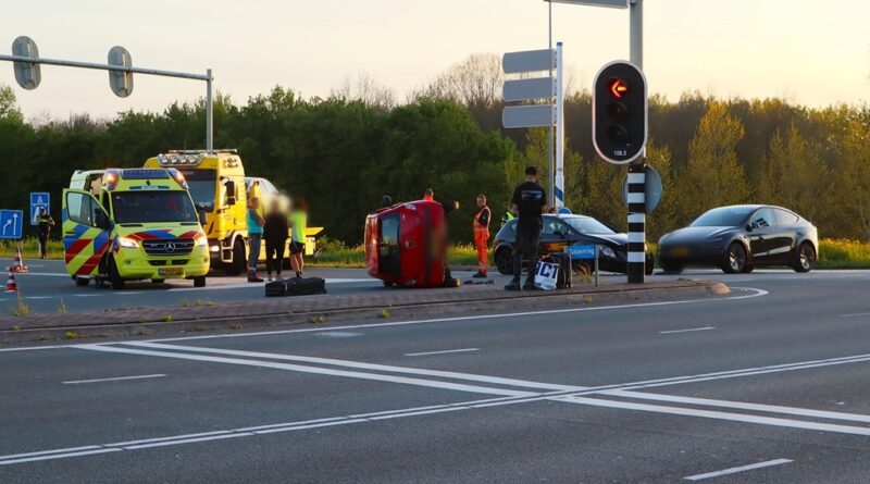 Het ongeval gebeurde om 20:00 uur op de kruising van de Tussenring en de aansluiting met de A6. Hierbij is een auto op zijn kant beland en raakten meerdere voertuigen beschadigd. Een ambulance kwam ter plaatse om inzittenden te controleren, maar zover bekend hoefde niemand mee naar het ziekenhuis.
